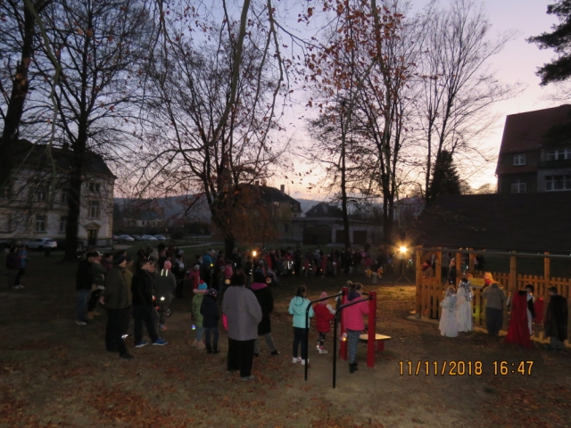 V neděli 11.11. 2018 byl svátek svatého Martina. Pozdní nedělní odpoledne patřilo dětem a všem, kteří přišli do parku za městským úřadem, aby se světélky v ruce shlédli malé divadelní představení ze života světce, které si pro účastníky připravili členové misijního kroužku navštěvující v SI – Základy křesťanství. Dozvěděli se, kde a jak žil, v čem nám může být vzorem a proč se stal svatým. Dále něco málo o svatomartinských tradicích a pak si společně zazpívali písně o světélku v nás.